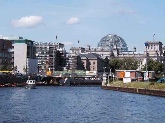 In the morning we took cruise on the Spree, on a tour called "Unter den Brücken" (Under the Bridges). It was a loop around the city, first down the Spree, and then returning on the Landwehrkanal. The flags fly atop the towers of the Reichsatag.
