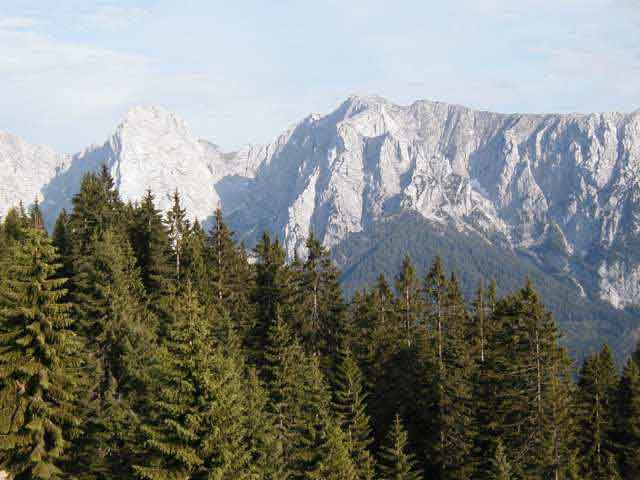 This is the view from the patio of the hut, looking across the Kaiser Valley at the "Wild Kaiser" range.