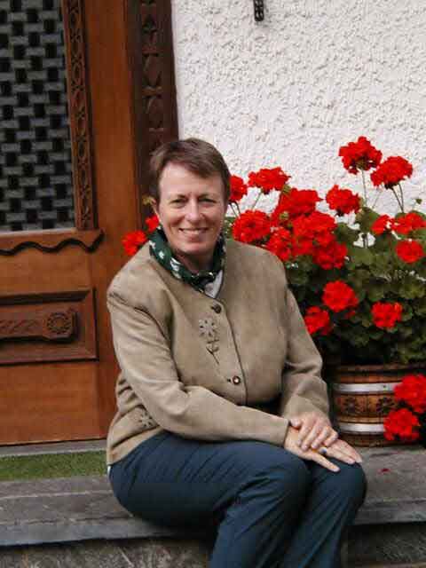 After a delicious lunch (Austrian cooking is first class!) Phyllis and I strolled and shopped in this lovely tourist town. I fell in love with this suede jacket, and convinced Phyllis she had to have it. She is sitting on the steps of our Pension. Haus Waidmannsheil. |