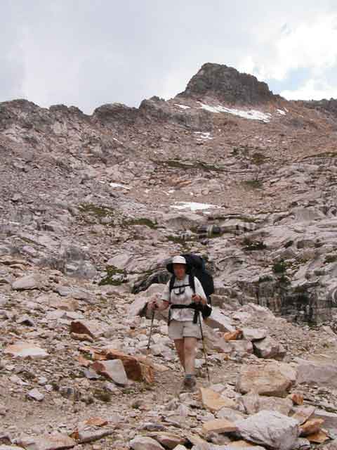 Rocky descent from Sand Pass. Imogene Lake ahead.