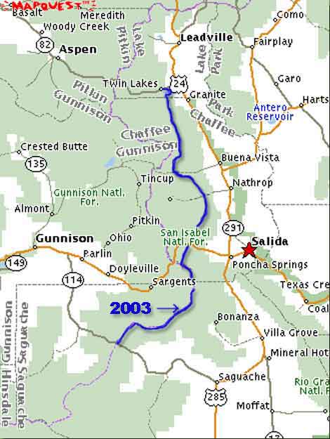The Colorado Trail from Twin Lakes to Highway 114, 130 miles.