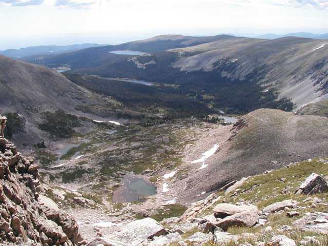 From right to left, Lake Isabelle , Long Lake, Left Hand Reservoir above, and Brainard at the far left.