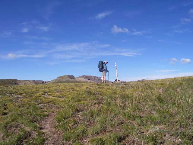 Gary at the saddle above the headwaters of Cochetopa Creek. We are grateful to finally be leaving this soggy valley behind.