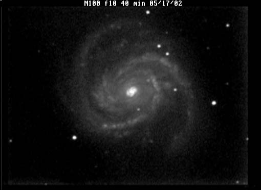M100, spiral galaxy Observer: G.K.Webber Date/Time: 3/21/99 09:01:25 Origin: 38:58:4 N, 95:16:6 W Camera: Starlight Xpress MX516 Telescope: 8" Meade LX200 Accessories: none Focal Ratio: f/10 Exposure time: 1560sec. Processing: dark, normal stretch, power law stretch Filters Used: none Notes: |