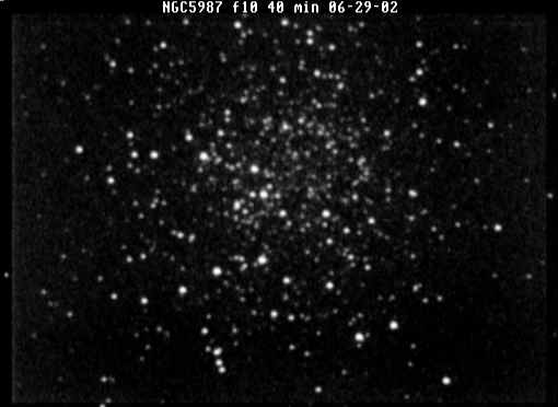 Object: NGC5987, globular cluster Observer: G.K.Webber Date/Time:06/29/02 Origin: 38:58:4 N, 95:16:6 W, Lawrence, KS Camera: Starlight Xpress MX516 Telescope: 8" Meade LX200 Accessories: none Focal Ratio:f/10 Exposure time: 2400 sec. Processing: dark, normal stretch, power law stretch, unsharp mask Filters Used: none Notes: |