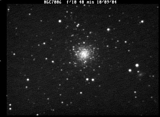 Object: NGC7006, globular cluster Observer: G.K.Webber Date/Time:10/09/2004 Origin: 38:58:4 N, 95:16:6 W, Lawrence, KS Camera: Starlight Xpress MX516 Telescope: 8" Meade LX200 Accessories: none Focal Ratio:f/10 Exposure time: 40 min Processing: dark, normal stretch, power law stretch, unsharp mask Filters Used: none Notes: |