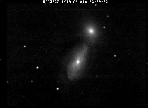 Object: NGC 3227, spiral galaxy Observer: G.K.Webber Date/Time: 03/09/02 Origin: 38:58:4 N, 95:16:6 W, Lawrence, KS Camera: Starlight Xpress MX516 Telescope: 8" Meade LX200 Accessories: none Focal Ratio: f/10 Exposure time: 3600 sec Processing: dark frame, normal stretch, power law stretch, unsharp mask Filters Used: Notes: |