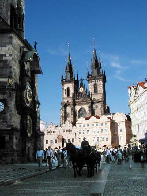 race down to Old Town Square to catch the mechanical clock (left) action