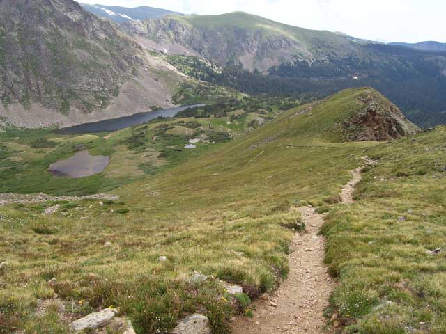 We leave the High Lonsesome and join the Devil's Thumb trail. Below is our destination for the evening, Devil's Thumb lake.